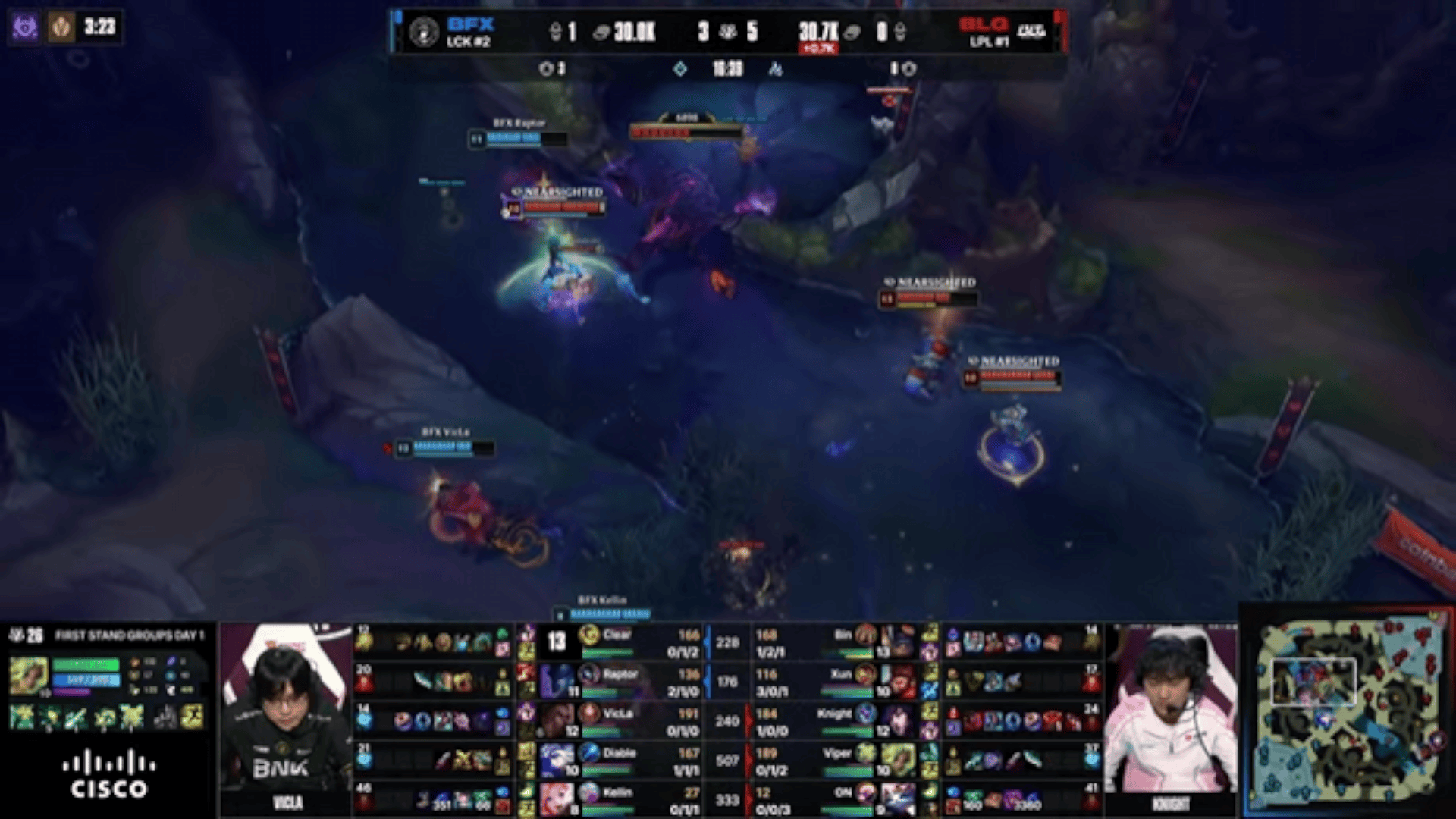 Viper泽丽闪现带猫向前被反杀,BFX先锋团1换2打退BLG