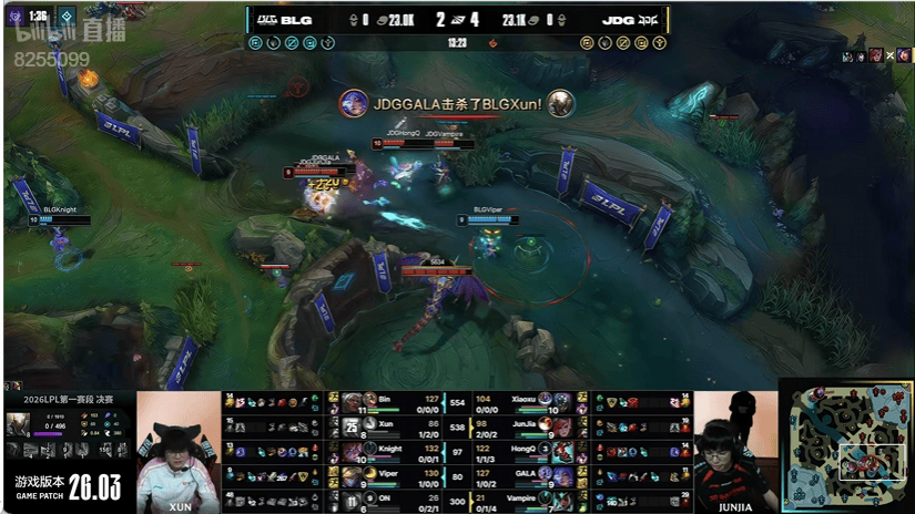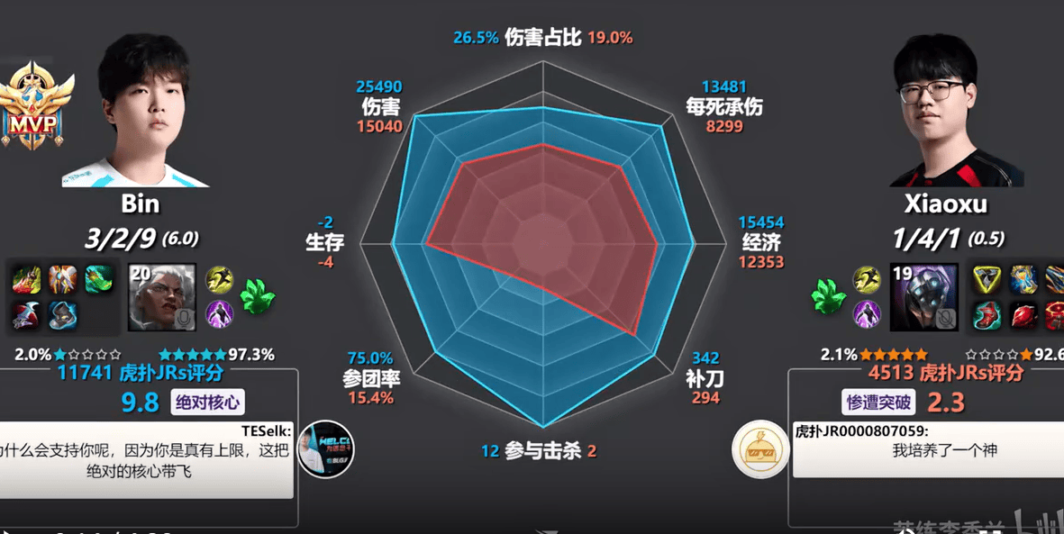 BLG对阵JDG赛后数据:Bin、Xun对位数据全包围