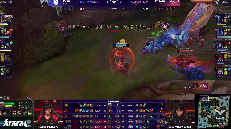 LCK:HLE中野分别gank上下路同时开花打出一波零换三
