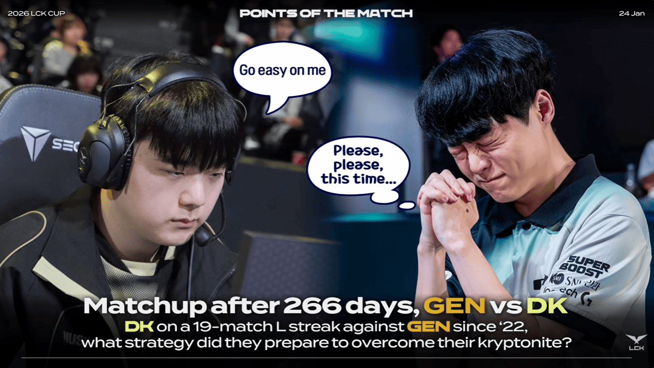 DK与GEN时隔266天再次交手,此前DK对战GEN已19大场连败