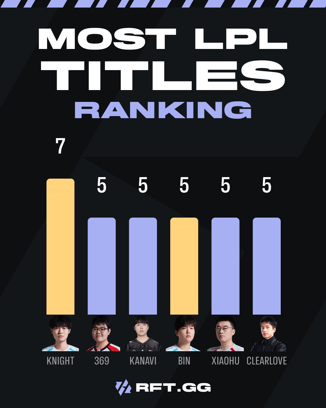 外媒统计选手LPL冠军数量:Knight 7次第一;第二5次共五人