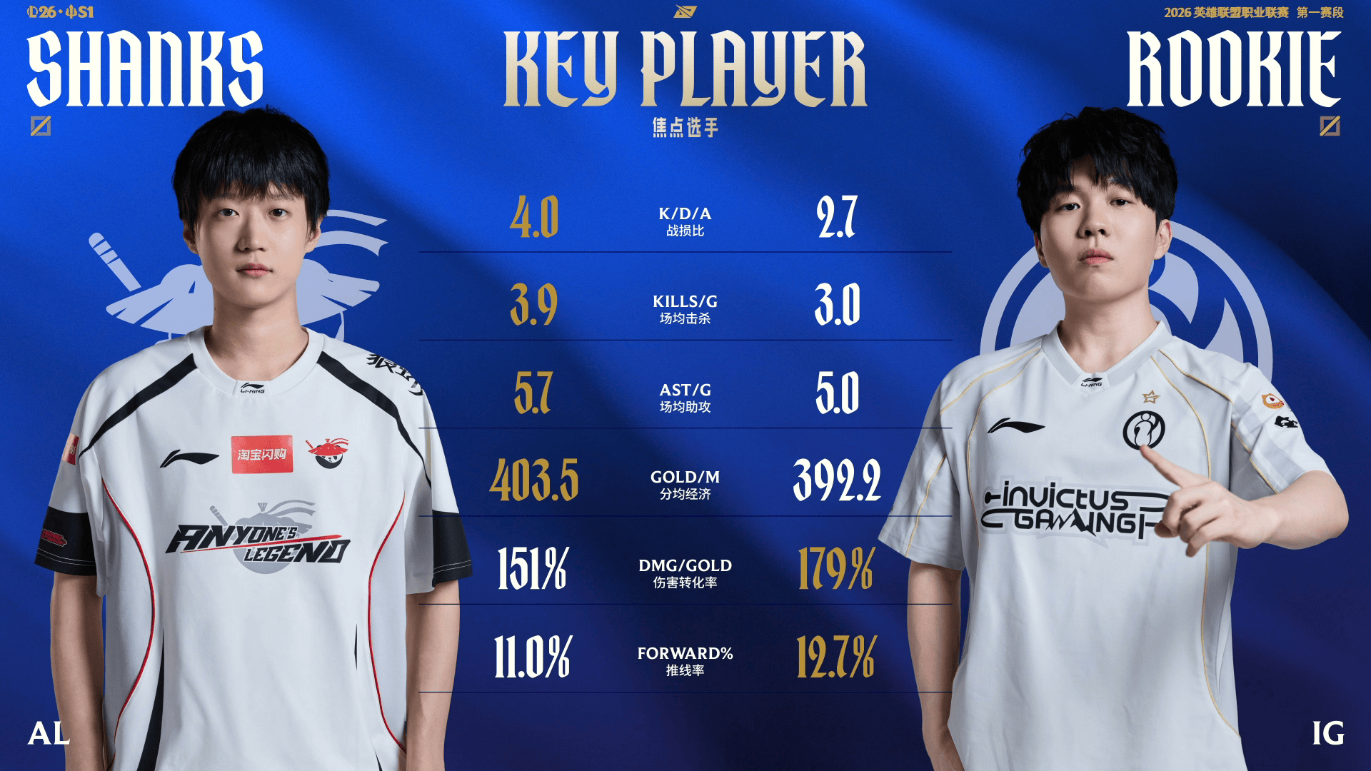 AL对战IG看点:Shanks四项数据领先,Rookie两项数据领先