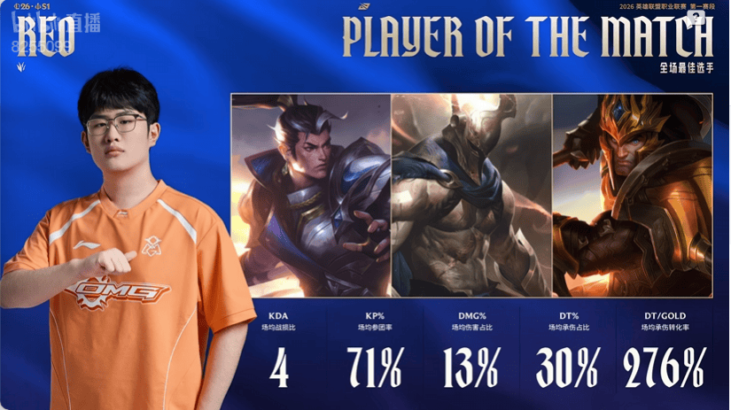 Re0操刀赵信,潘森和皇子拿到OMG对阵LGD比赛的全场MVP