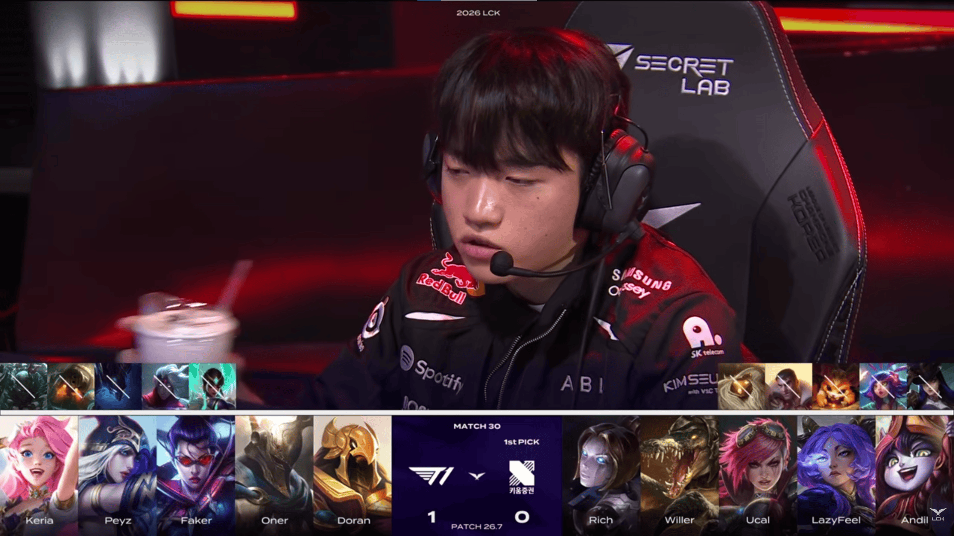 LCK:Ucal瑞兹离谱开车开到对手塔下,T1笑纳大礼0换4直接一波