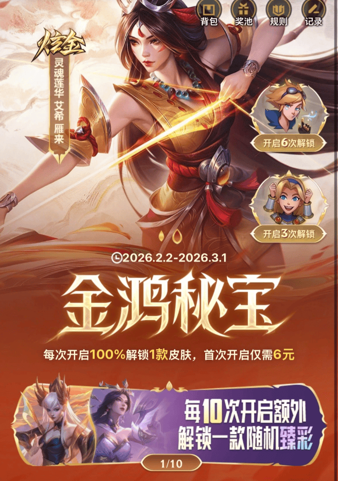 金鸿秘宝6元抽皮肤!来发帖分享你抽到的皮肤