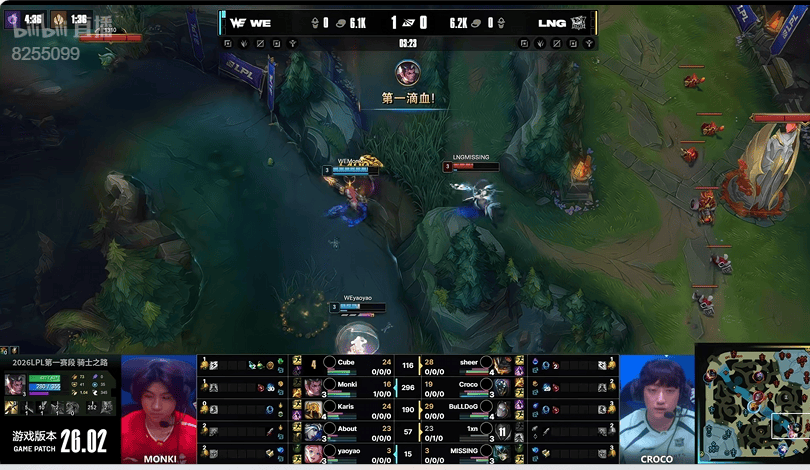 LNG双人组压线过深被Monki赵信绕后拿下一血