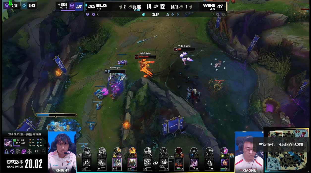 Xun利用复活甲勾引WBG众人,ON配合Knight进场轻松完成0换2