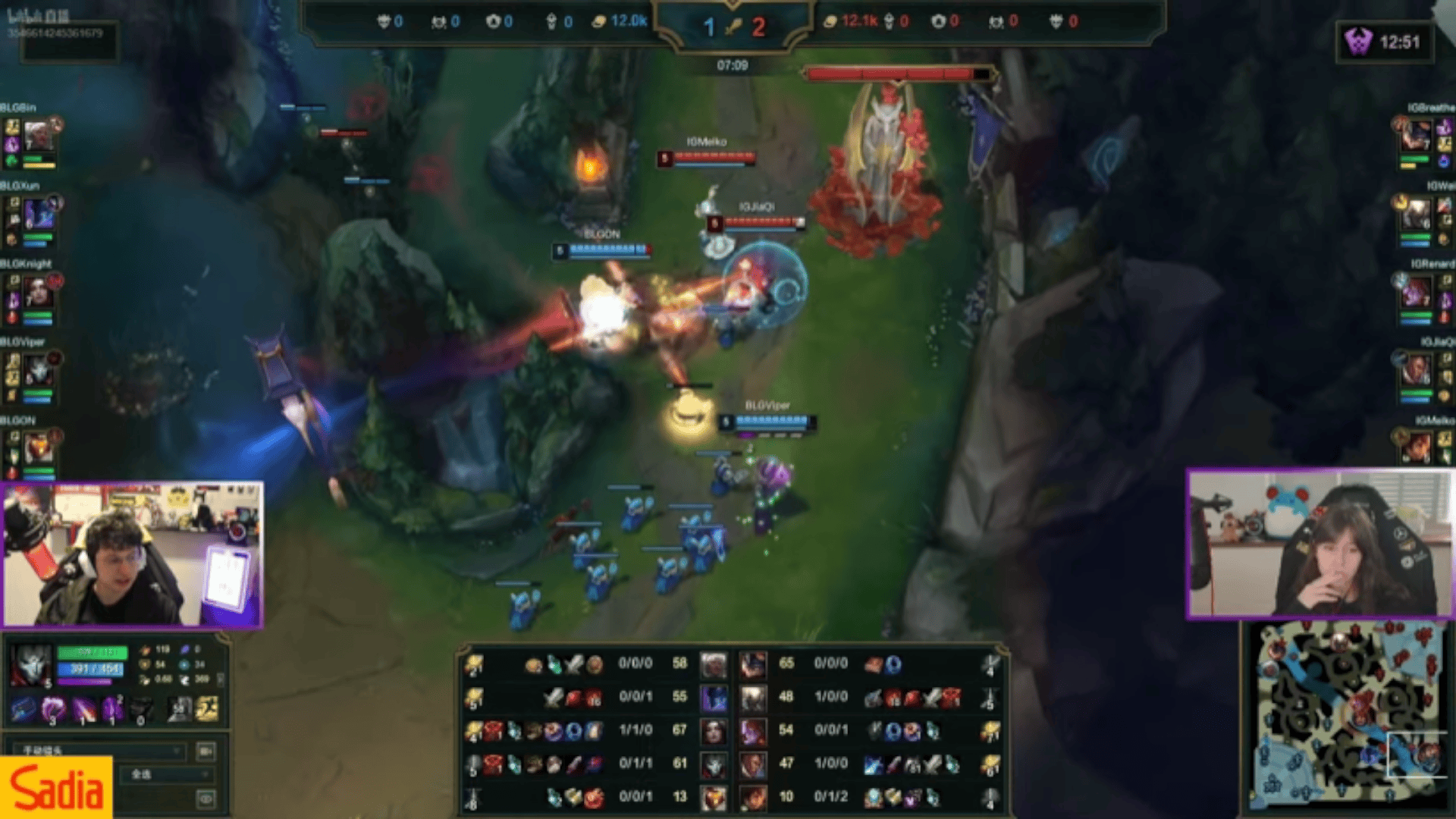 EWC:Xun纳亚菲利带球大三个,BLG下路团0换5团灭IG