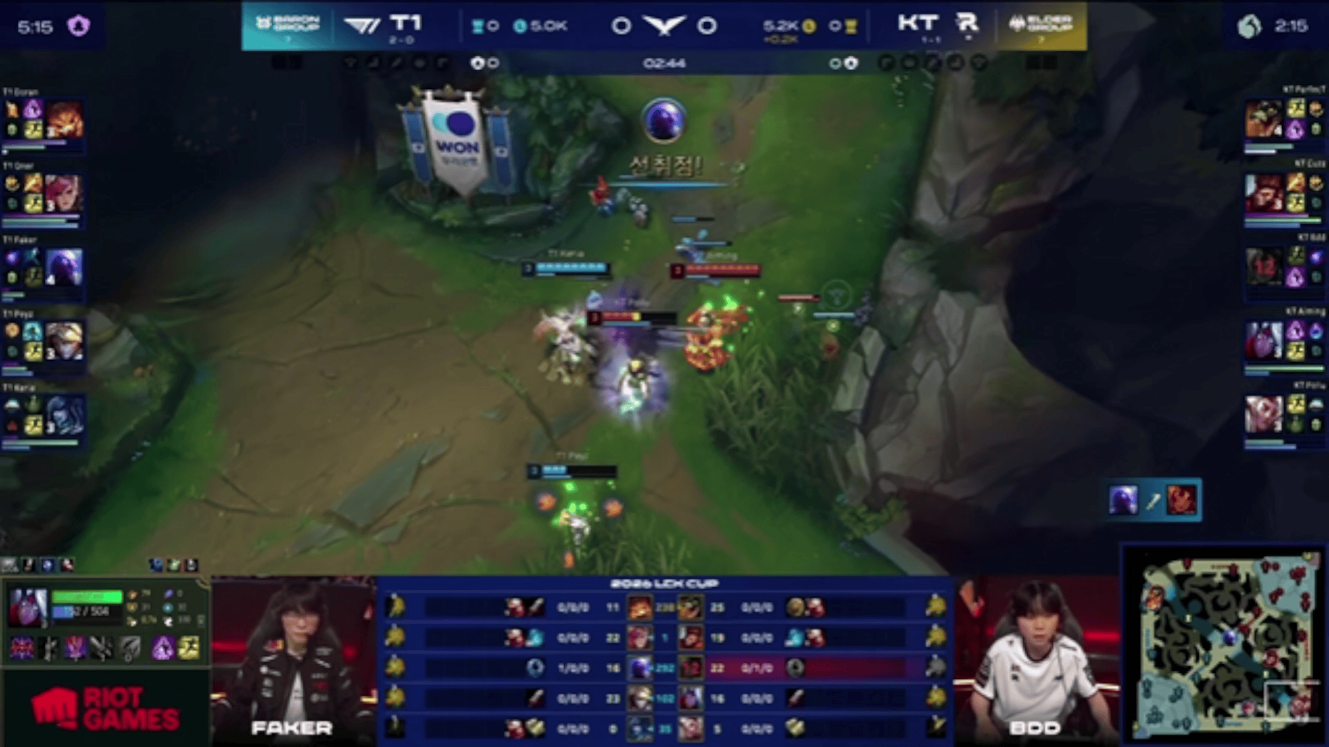 LCK:Faker瑞兹开场单杀Bdd岩雀,同时T1下路线杀