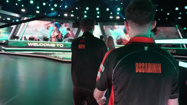 LCK季前赛赛前小游戏:轮流进攻,在指定位置插守卫即为成功
