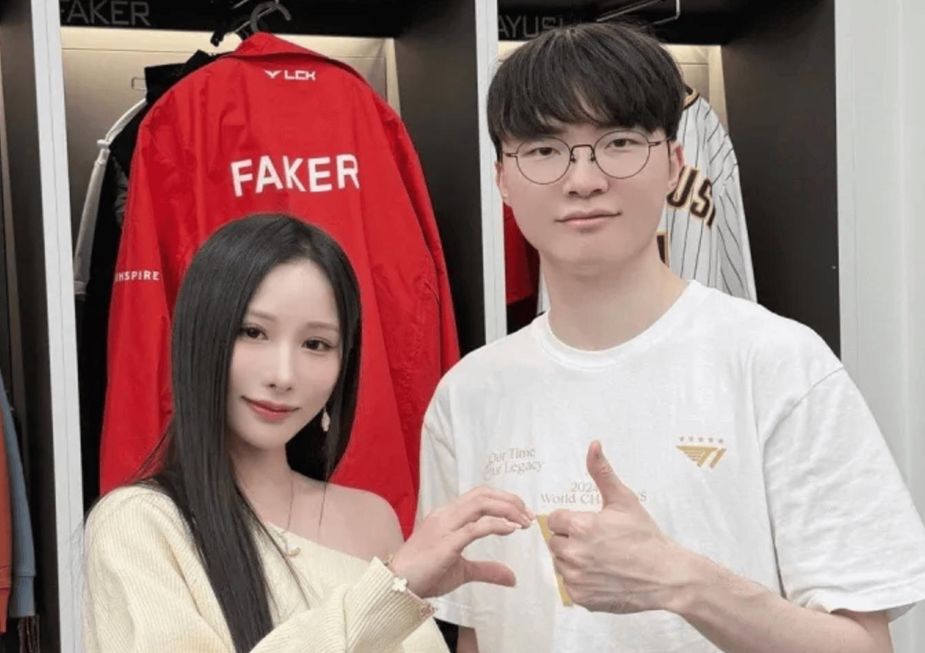 经典比心点赞姿势,著名coser分享跟Faker的合影