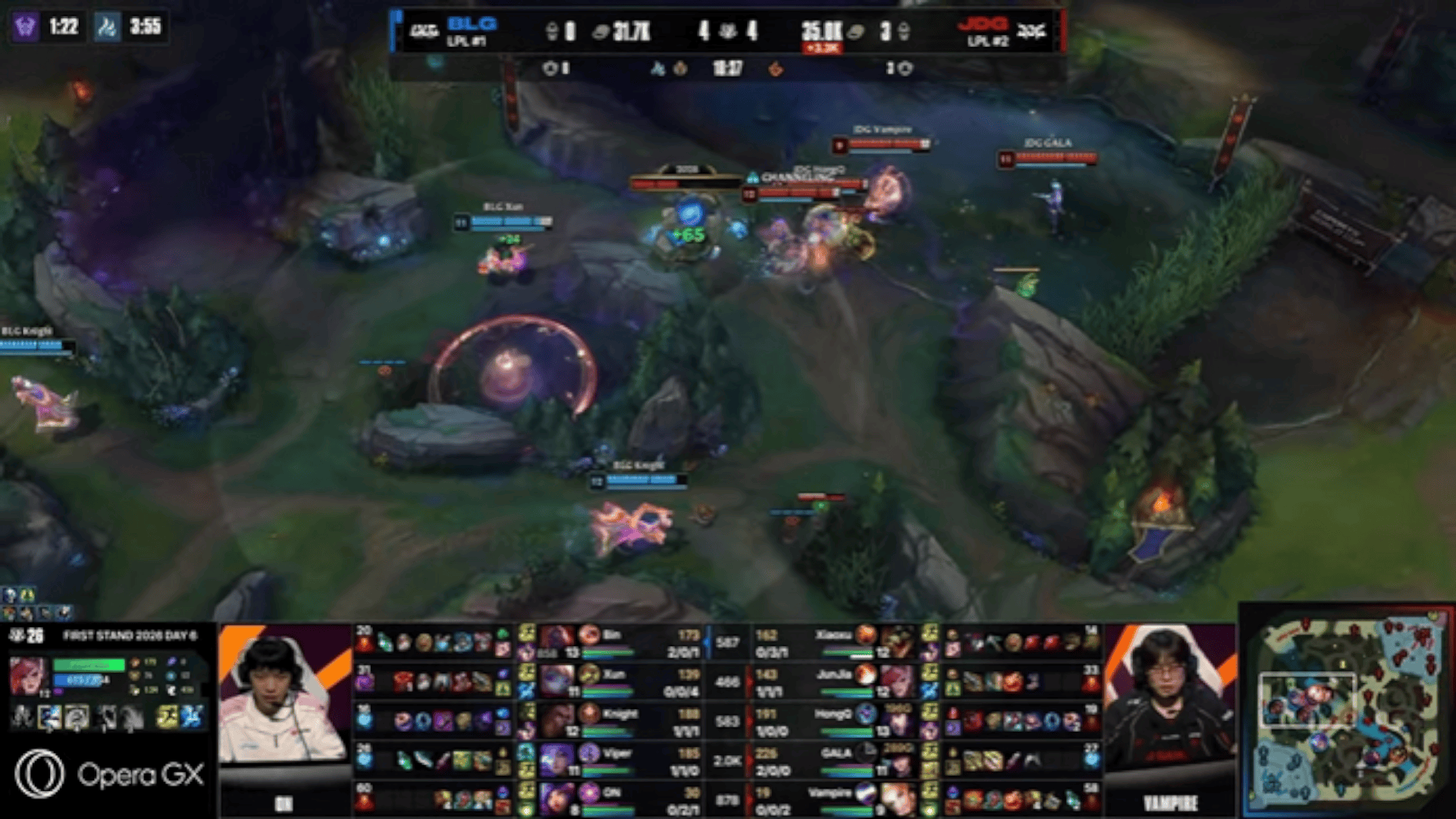 BLG 1-0 BFX:上中对位单杀强势穿线,BLG首局轻取BFX