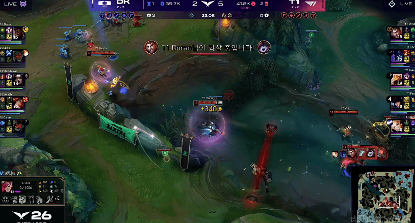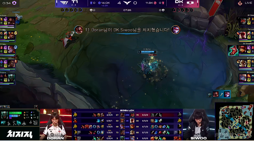 Siwoo兰博面对gank丝血逃脱,DK中野赶到收掉T1上野二人组