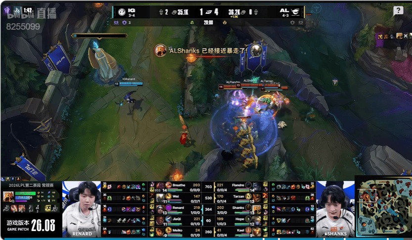 HongQ永恩率先击杀杰斯,随后IG中野前来支援同样被杀