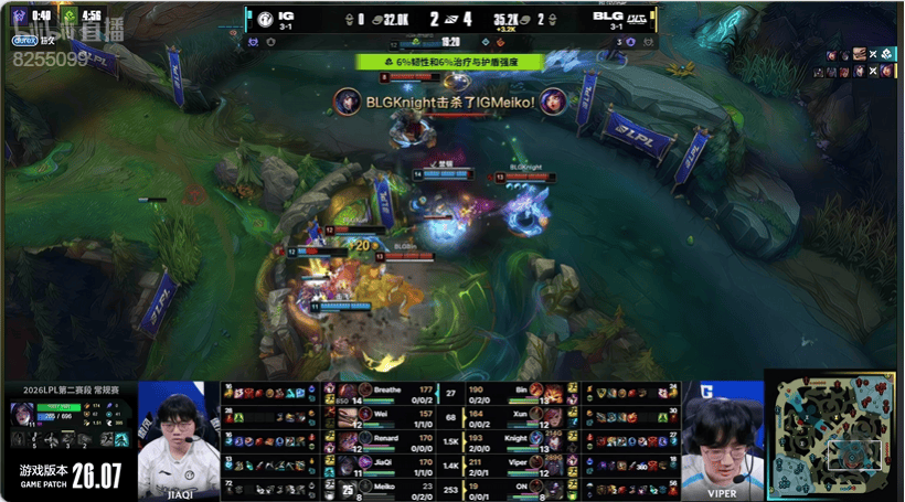 ZUIAN主动出击被Knight反蹲到,BLG打出一换二转进大龙