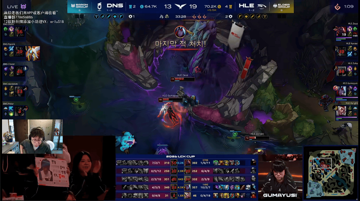 LCK:Gumayusi韦鲁斯团战无解发挥,砍下四杀后HLE再次拿下大龙