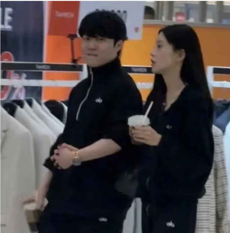 网友韩国遇到Rookie和女友逛街,穿情侣装十指相扣