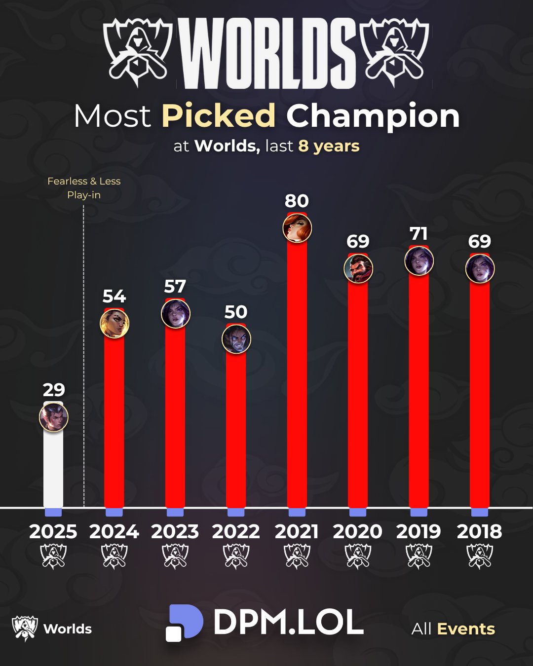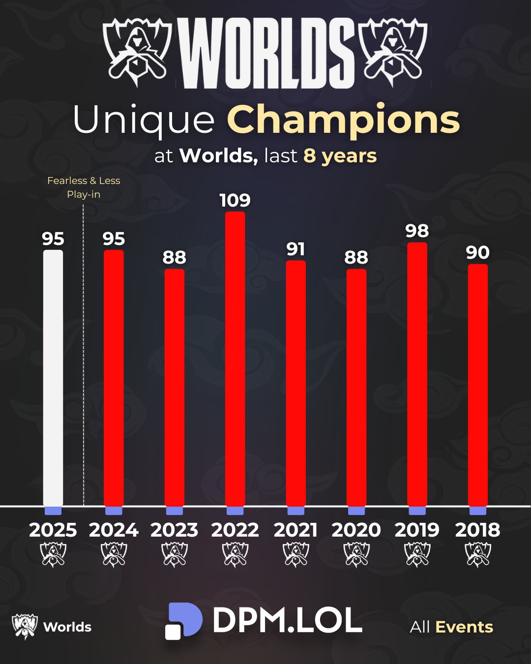 外媒统计S8以来历年S赛使用不同英雄数量:S12最多