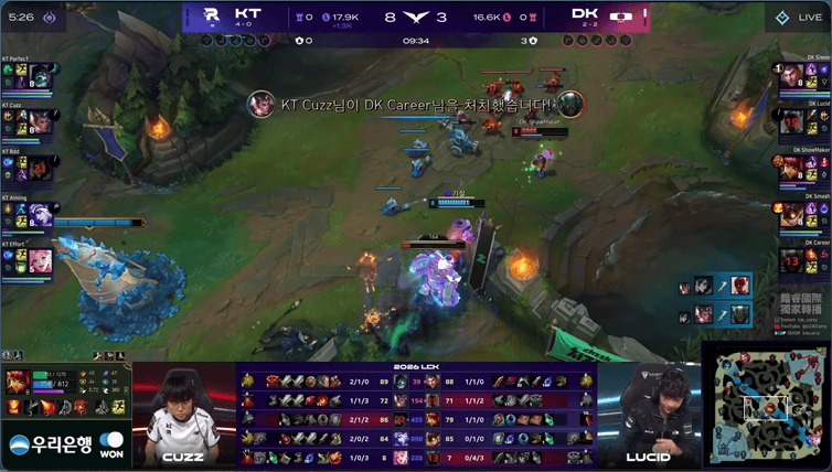 LCK:迷失方向,DK中上被KT找到机会击杀