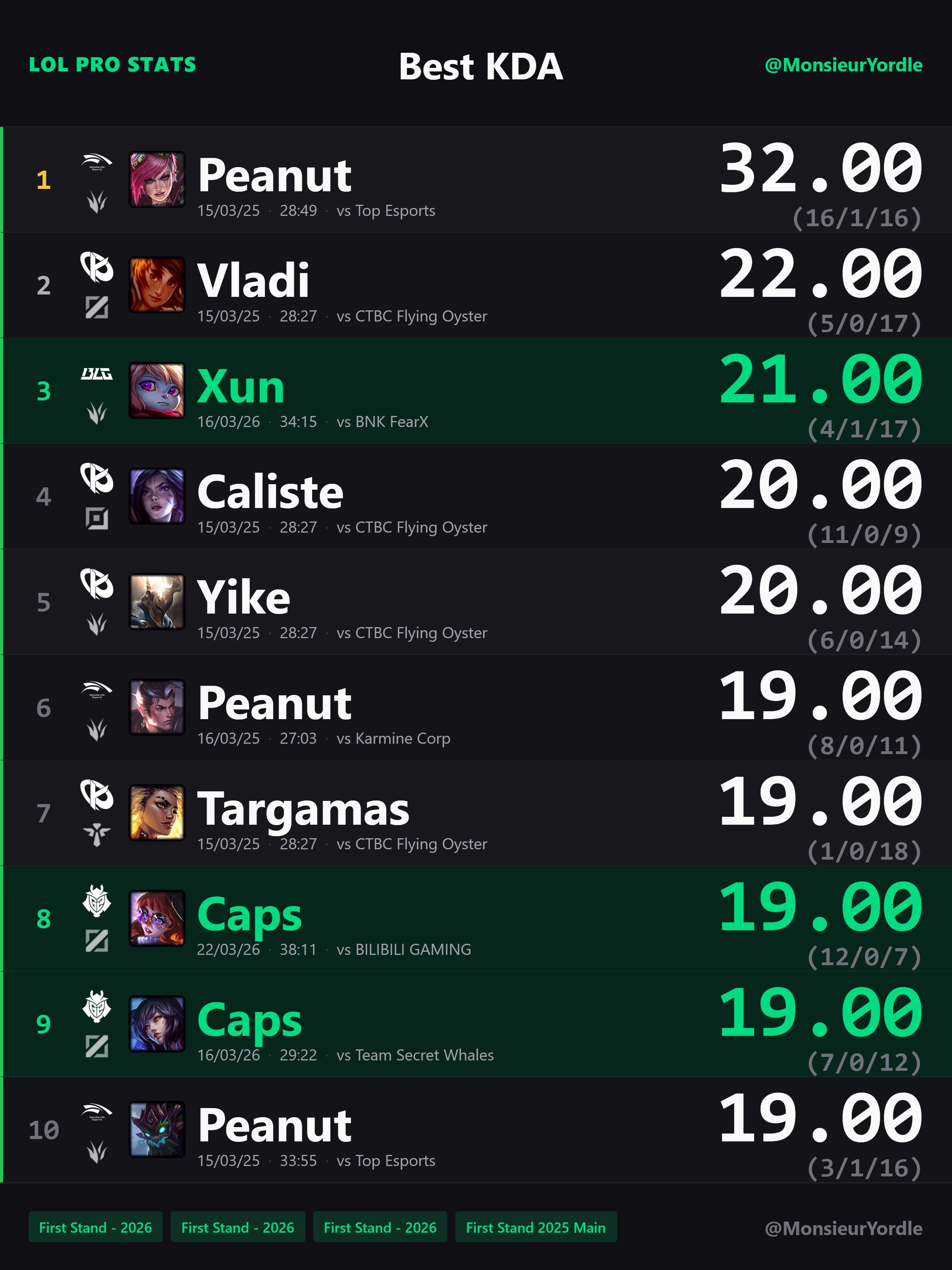 外媒统计先锋赛单场KDA排行:Peanut对阵TES所选蔚排名第一