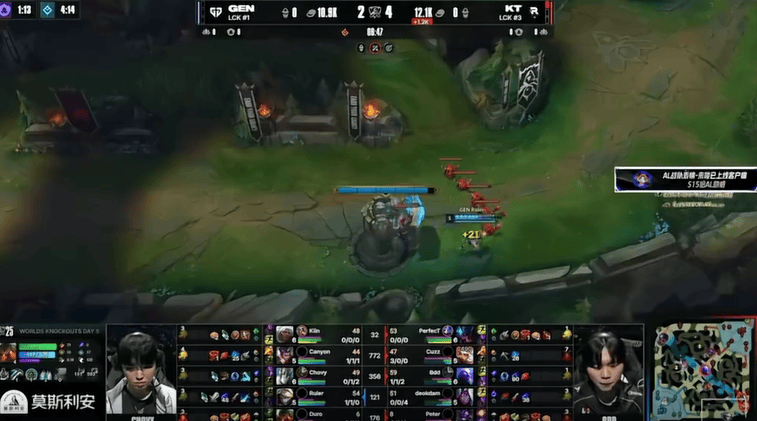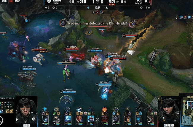 GEN先手Bdd效果不佳,deokdam伤害打满KT团战大胜并拿下先锋