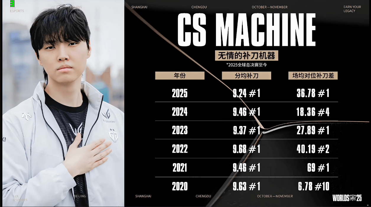 无情的补刀机器!Chovy近六年分均补刀均位列第一