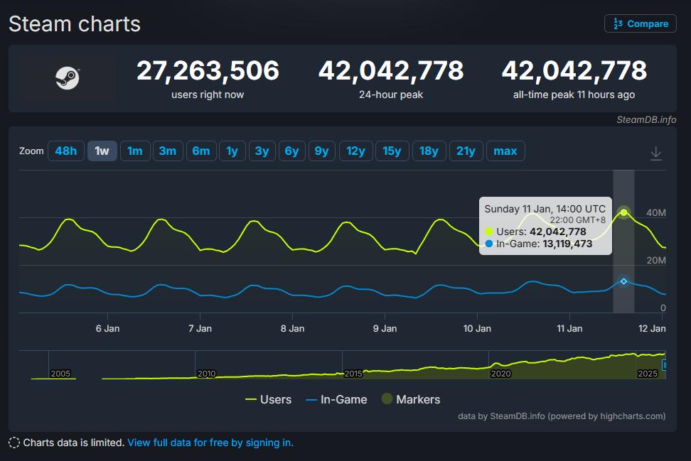 Steam同时在线人数峰值突破4200万,再创历史新高
