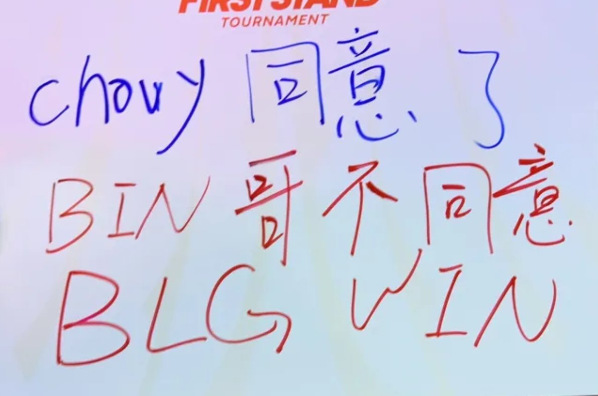 JR的“Bin哥不同意”应援牌,现场见证BLG夺冠