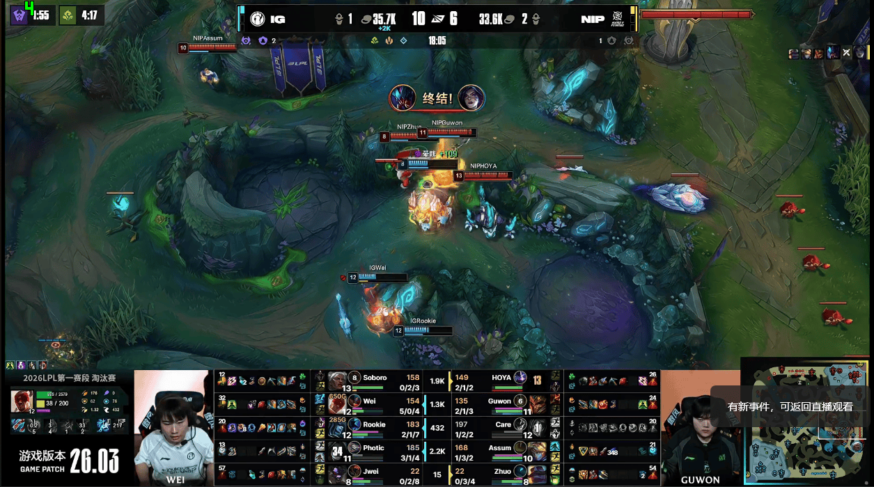 IG第四局集锦:Guwon奇亚娜状态不佳,IG趁热打铁拿下胜利