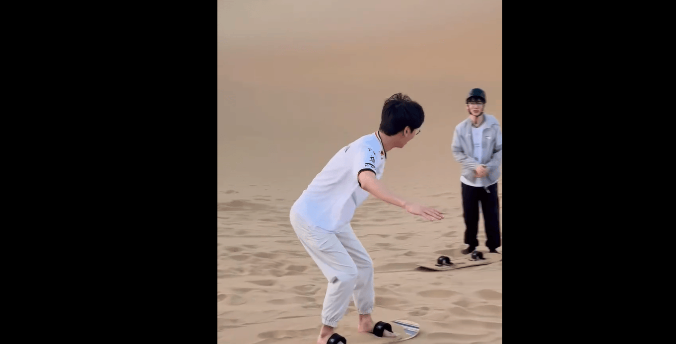 这技术如何?T1官方分享队员进行沙漠滑板运动