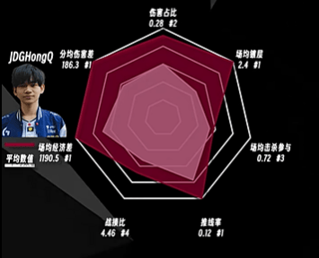 德杯淘汰赛全场数据雷达图:HongQ各项数据名列前茅