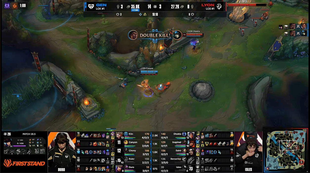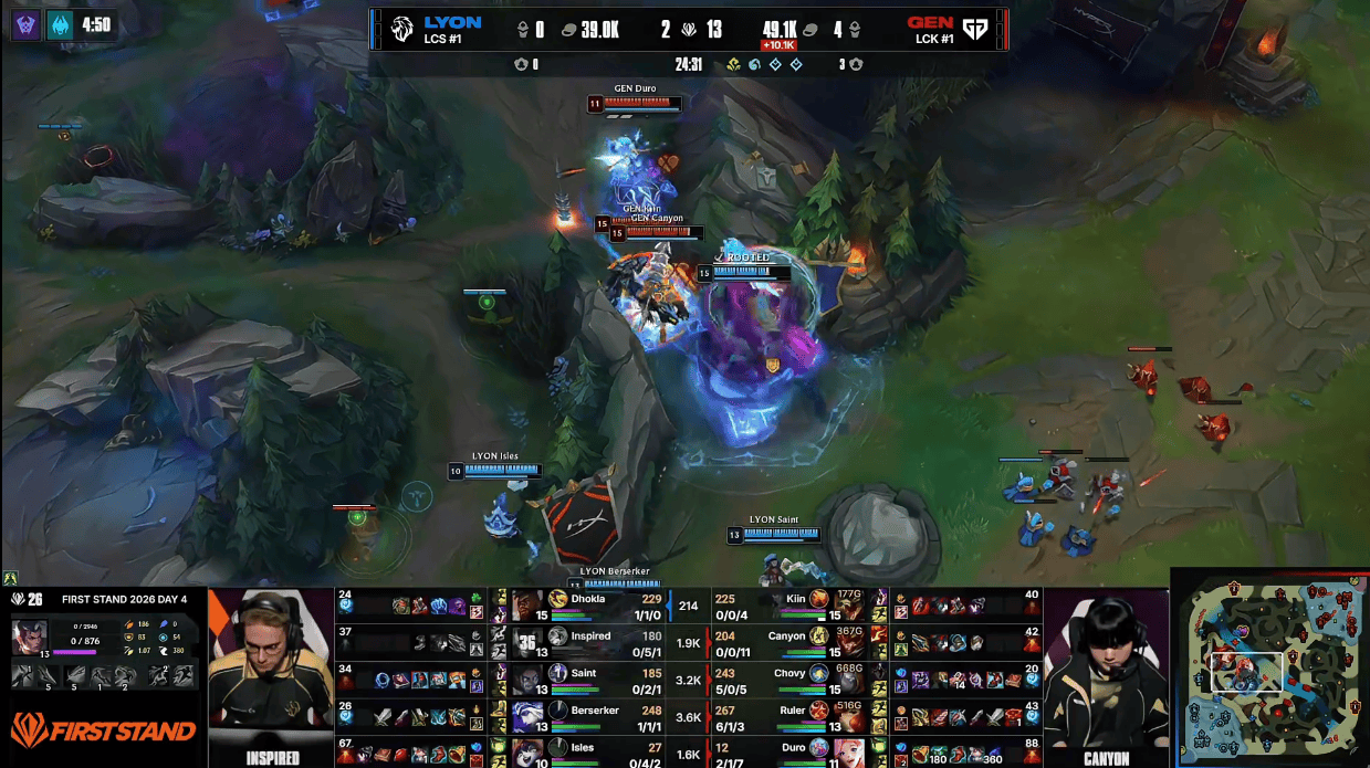 LYON两人蹲伏kiin,Chovy迅速大招支援GEN完成0换2