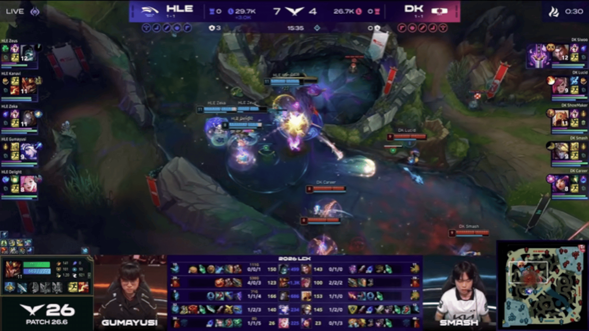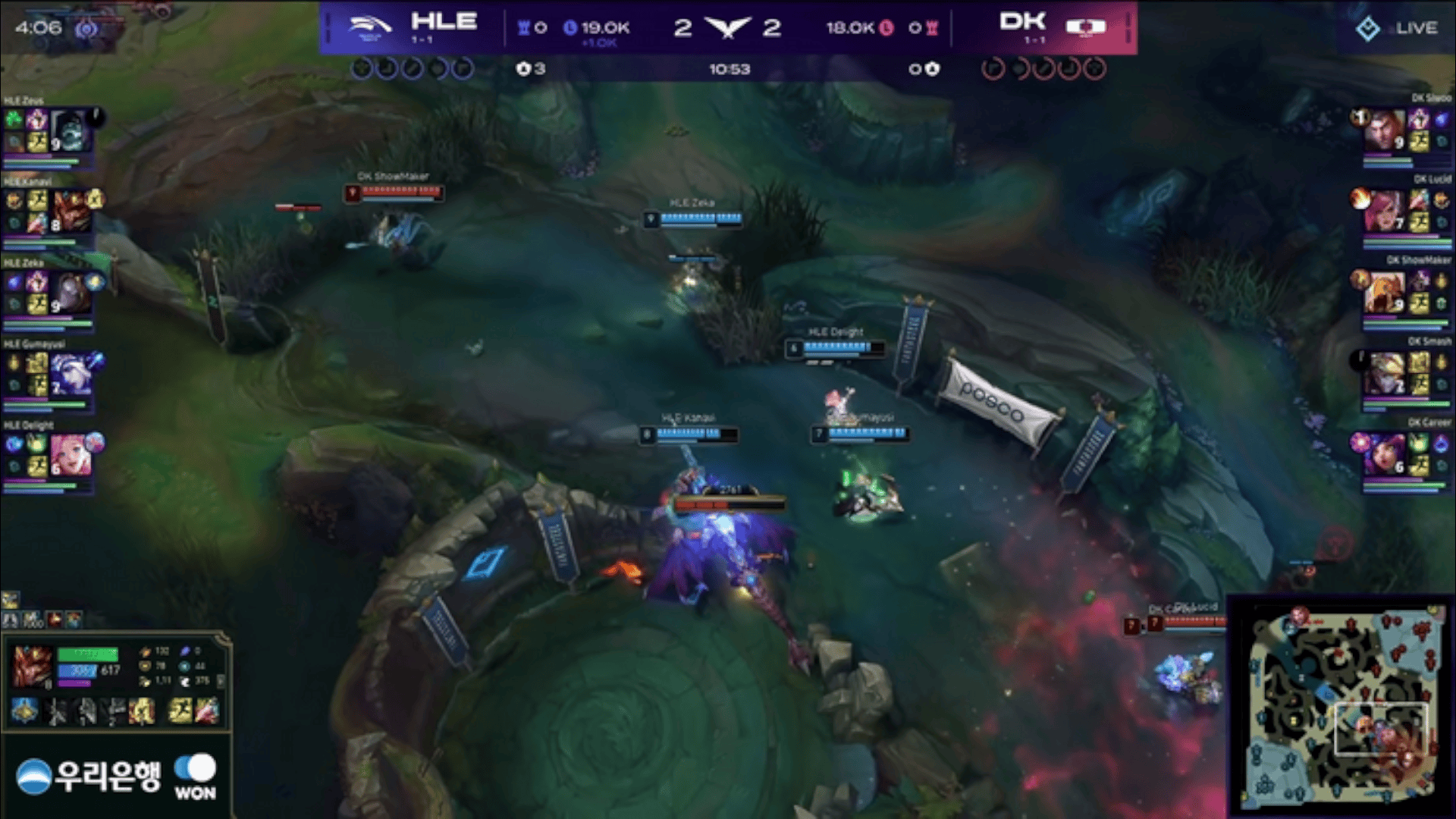 LCK:DK中辅先手强势开团只杀一个,HLE反打一波1换2