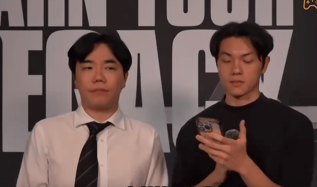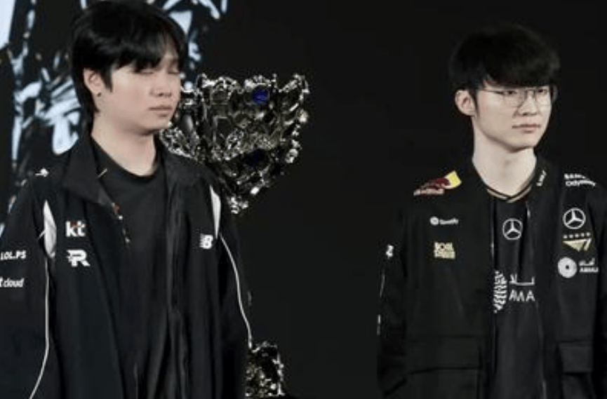 决赛赛前媒体日,Bdd和Faker合照:俩人略显拘谨