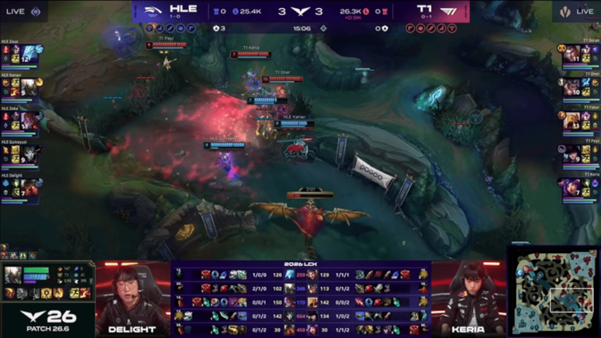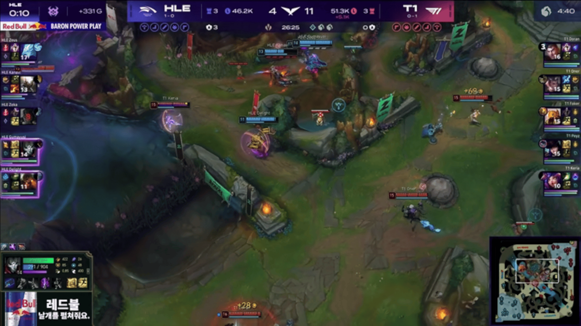 LCK:HLE野辅连续阵亡,T1河道团先1换2随后又一波0换2