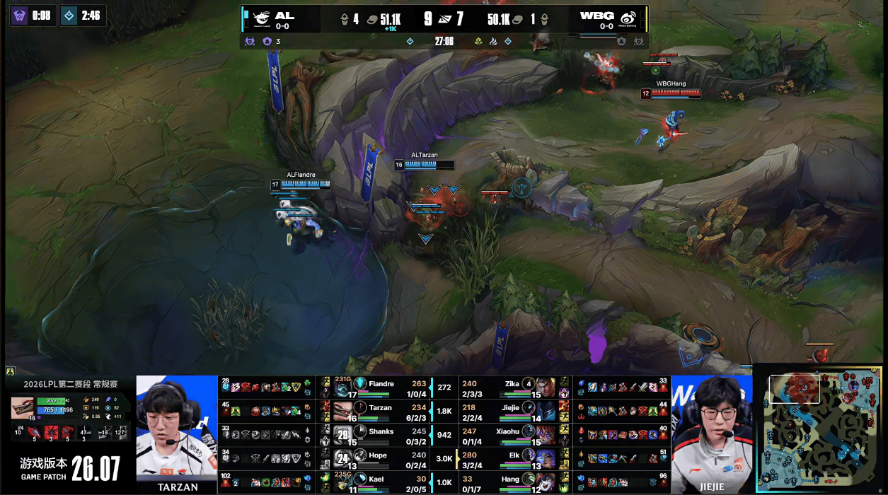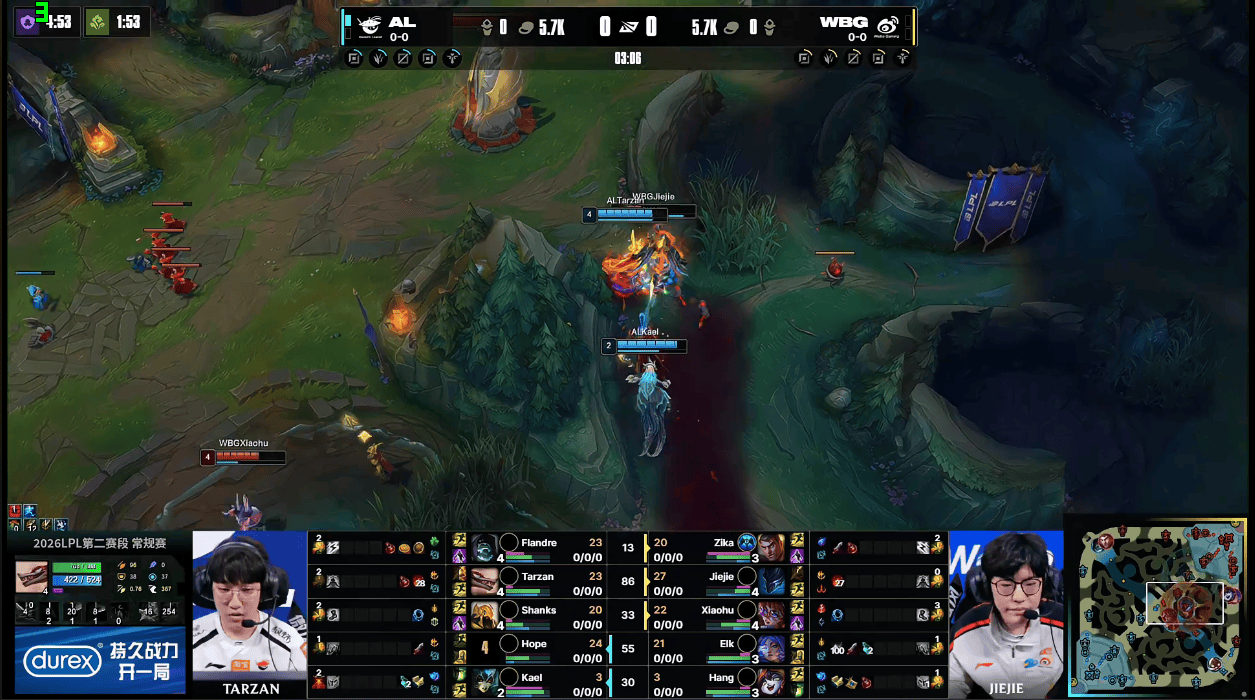 LPL:Shanks侧翼给足压力,Tarzan依旧伤害拉满AL团战取胜一波