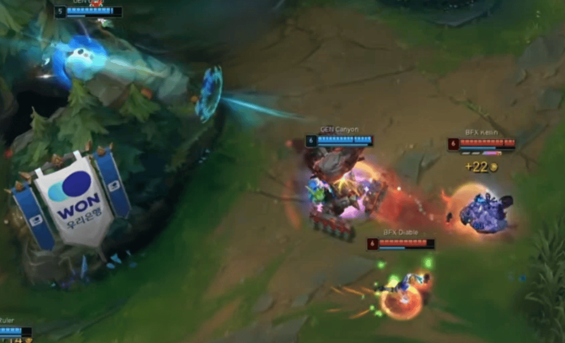 难有发挥,Cube杰斯在下路遭到BLG双C轻松击杀