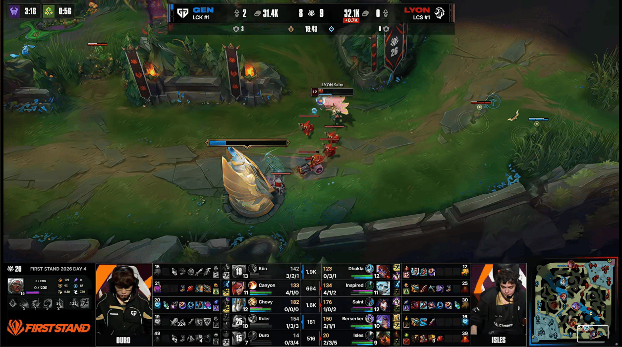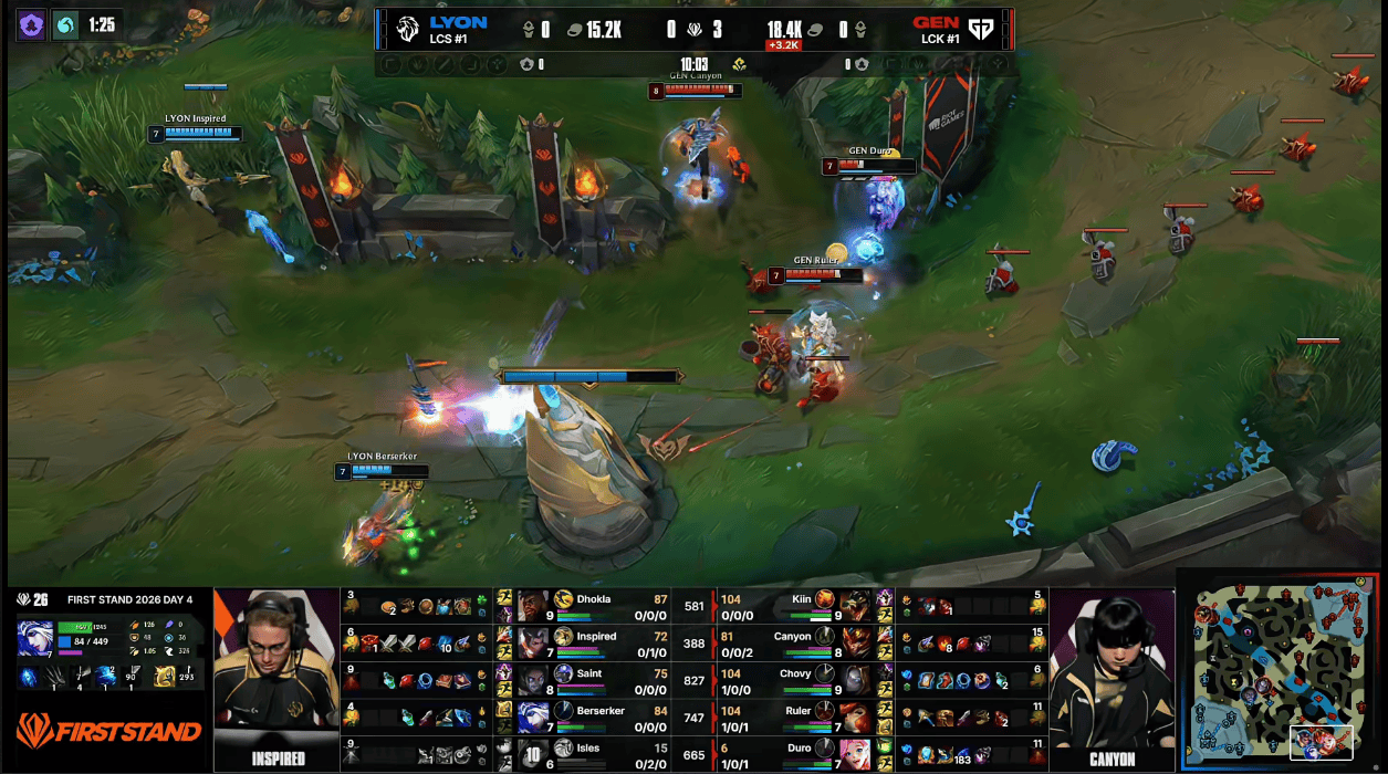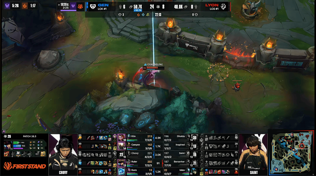 GEN 1-0 LYON:前期下路打开破口,GEN全程碾压25分钟取胜