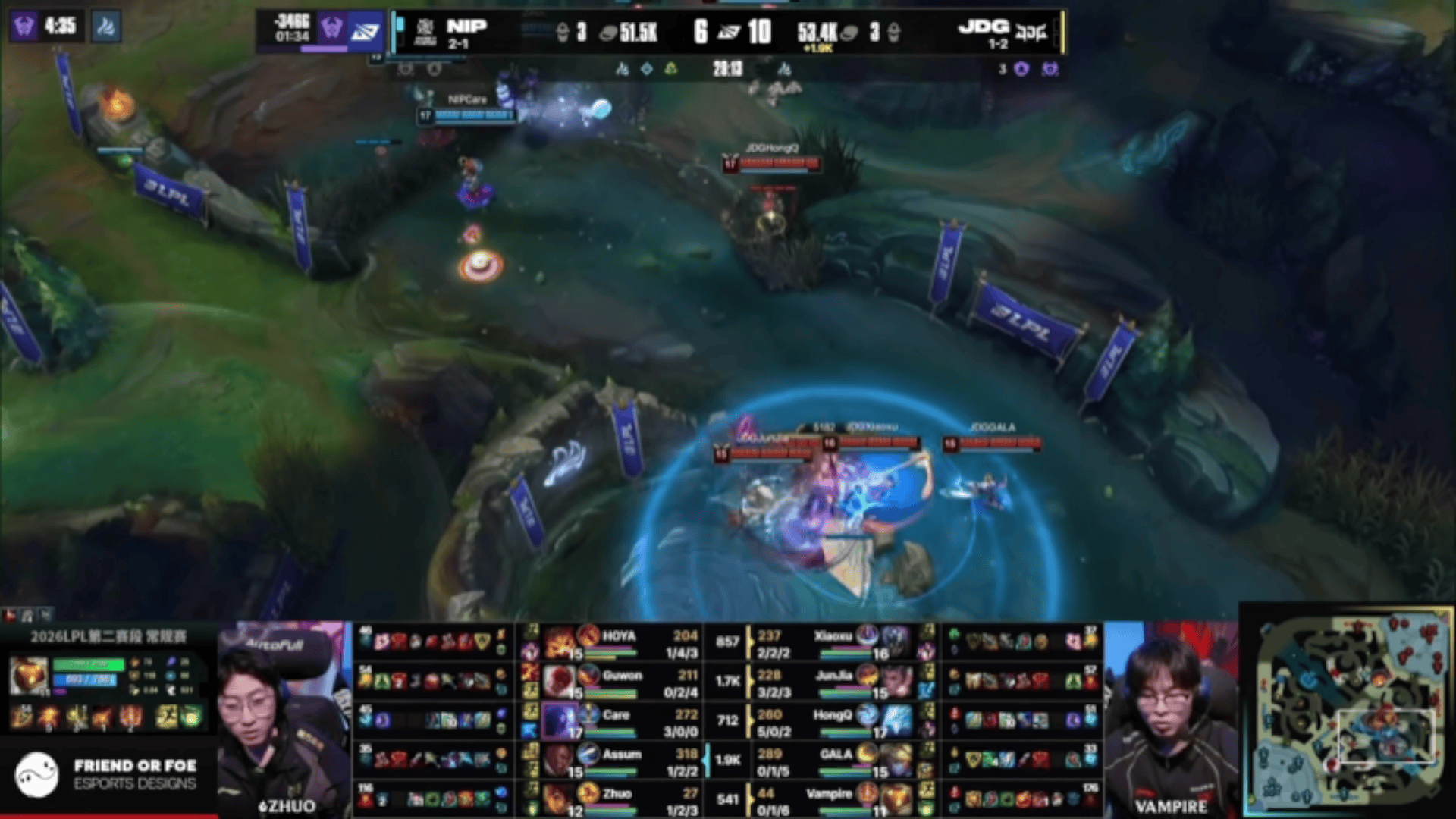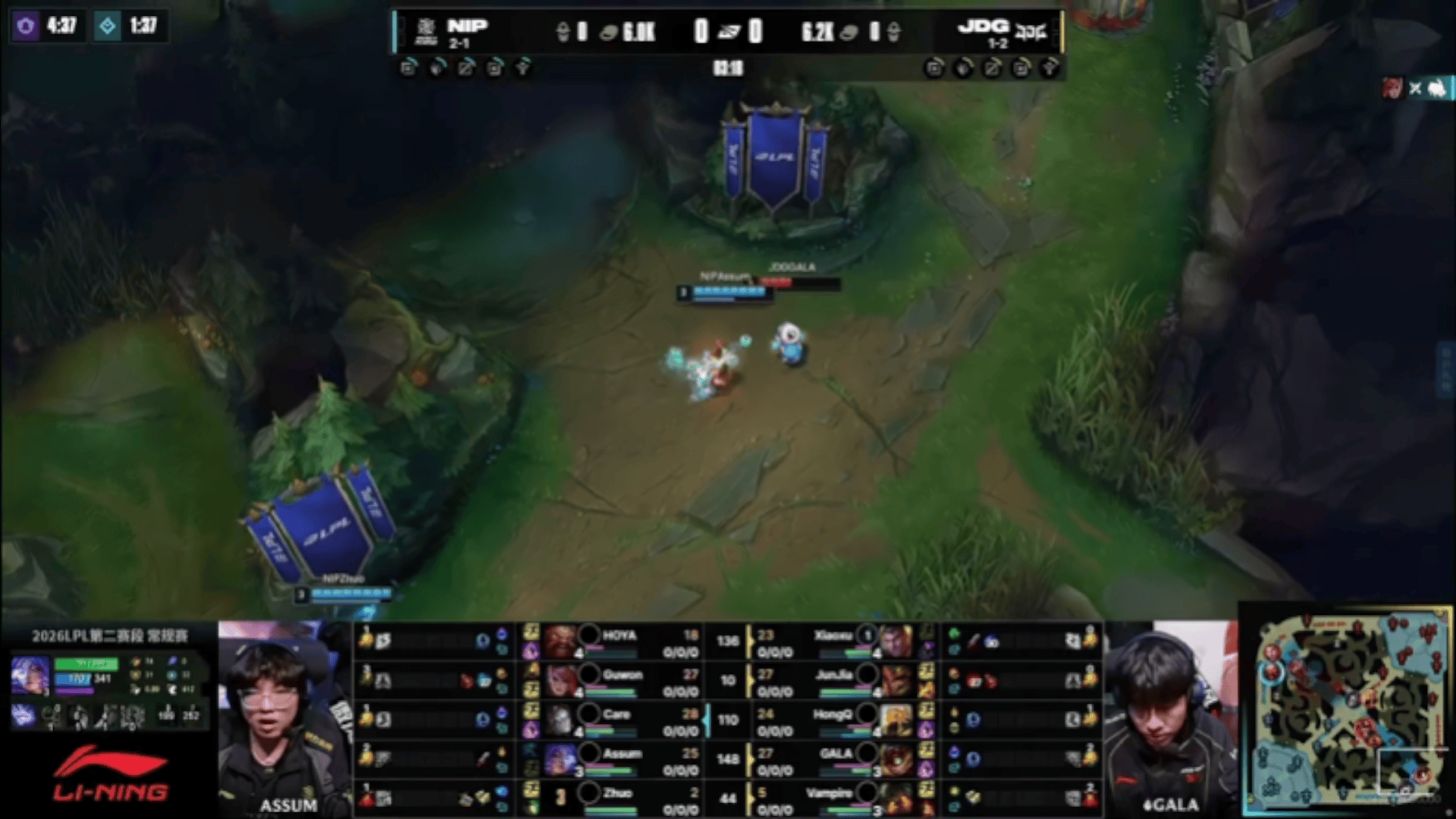 LPL:Guwon盲僧一串三,NIP小龙团1换4大胜JDG