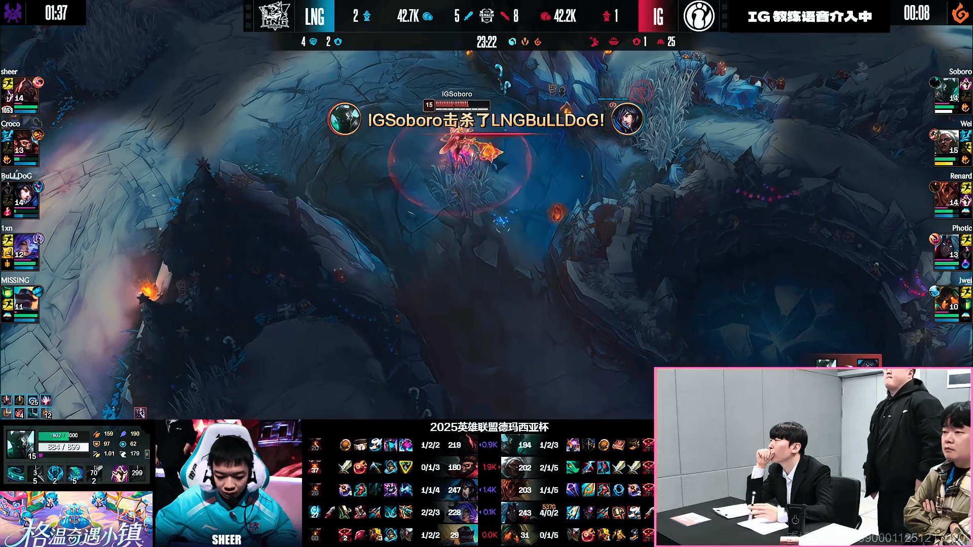 首次应用,IG对阵LNG第一局比赛中出现教练语音介入画面
