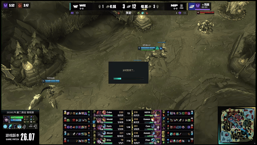 WE对阵NIP第一局比赛第24分钟时,比赛进入暂停(已解决)
