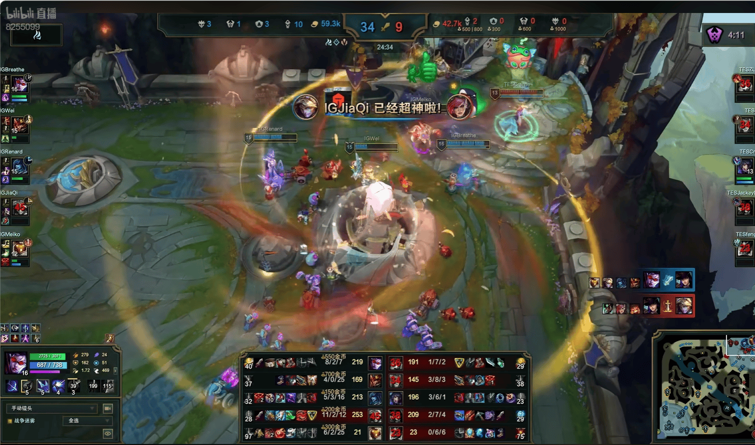 fengyue萨勒芬妮团战大招控到Knight阿卡丽,TES团战打出零换三