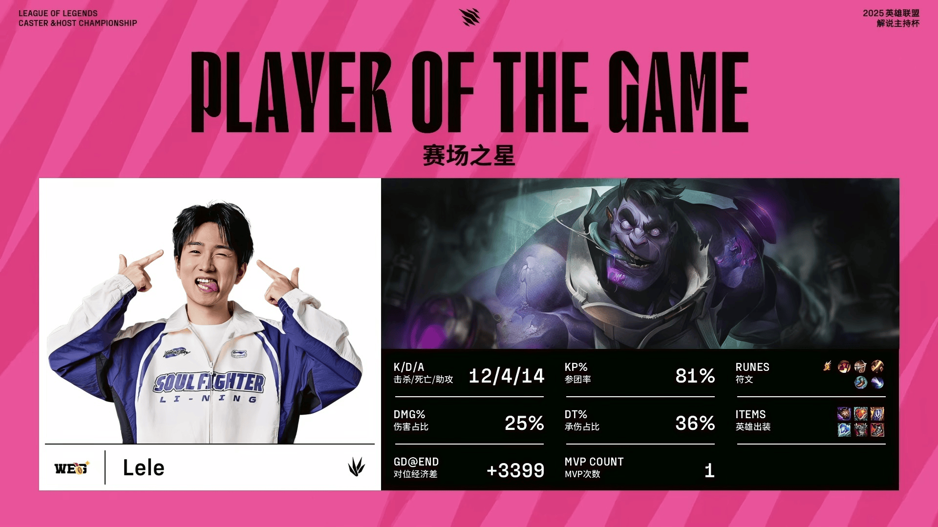 DJOner莉莉娅打出6/0/13战绩,斩获GBS对阵RHPA第五局MVP