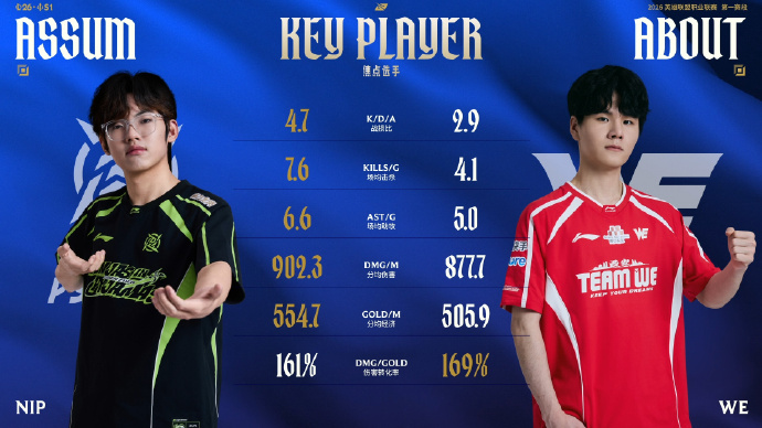WE vs NIP赛前射手数据对比,除伤转数据外Assum全面占优