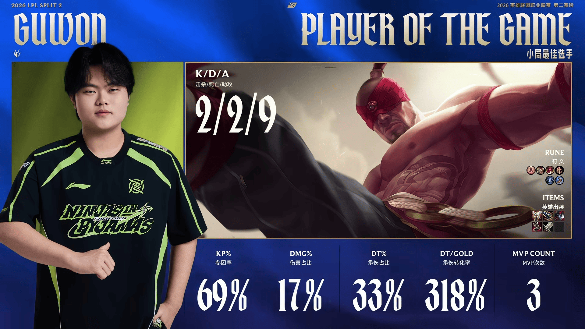 Viper韦鲁斯打出8/1/9战绩,拿到BLG对阵IG第三局比赛MVP