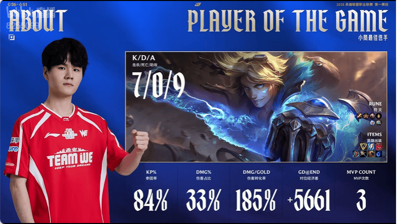 About使用EZ打出7/0/9战绩,拿到WE对阵TT首局比赛MVP