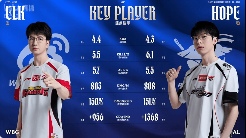 LPL官方发布WBG与AL的射手数据对比,ELK与Hope数据势均力敌