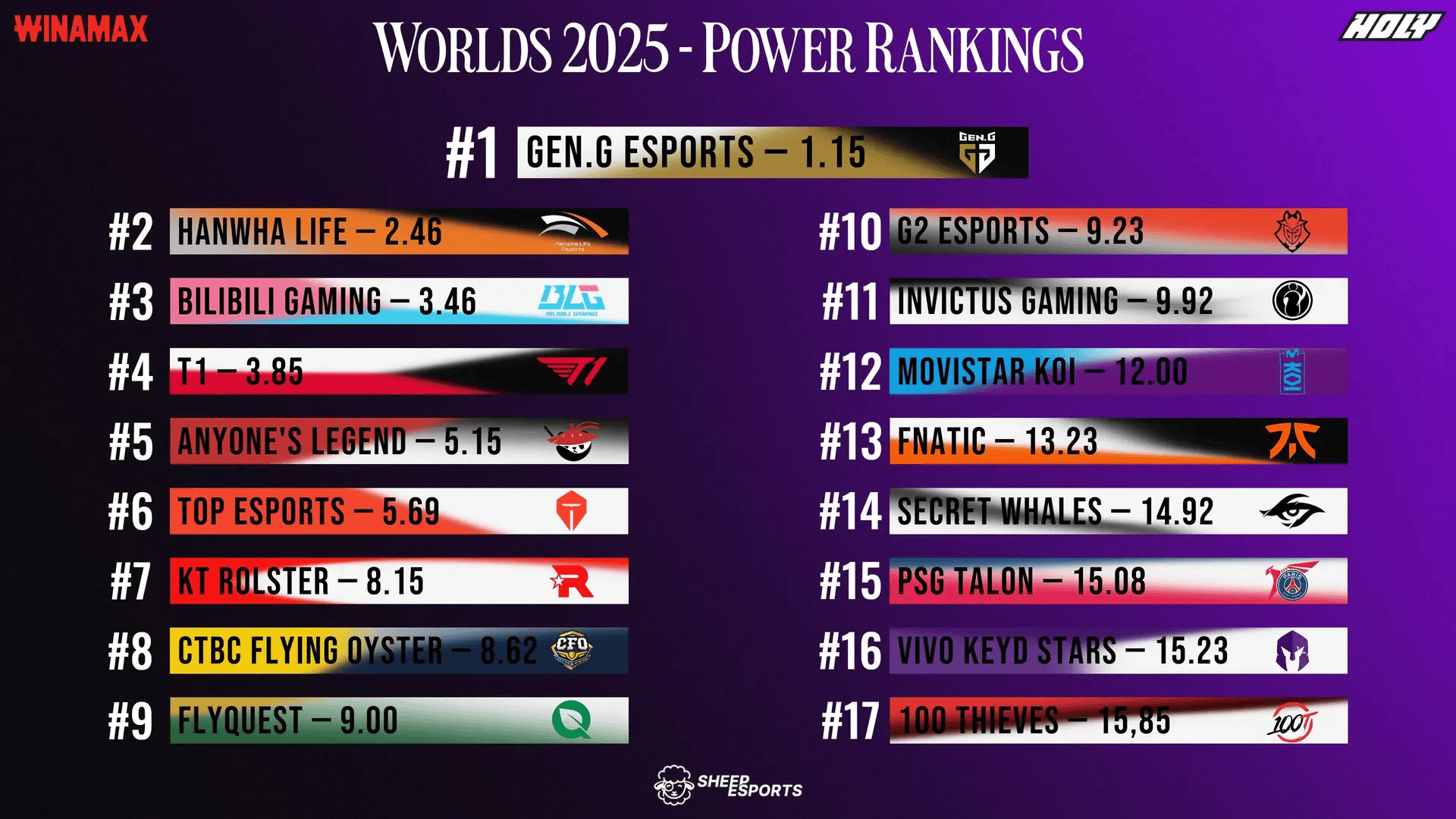 外媒发布战队排名:GEN、HLE、BLG、T1前4;TES、IG第6、11