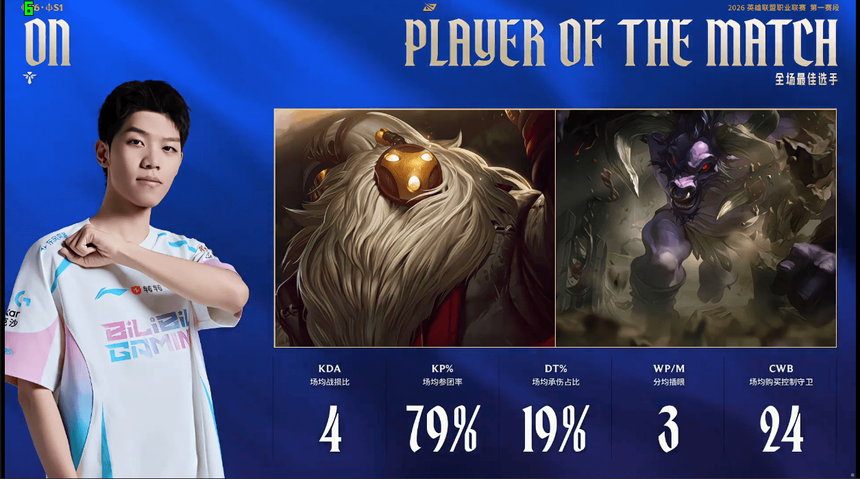 ON凭借两局灵性发挥,斩获BLG对阵WBG大场MVP