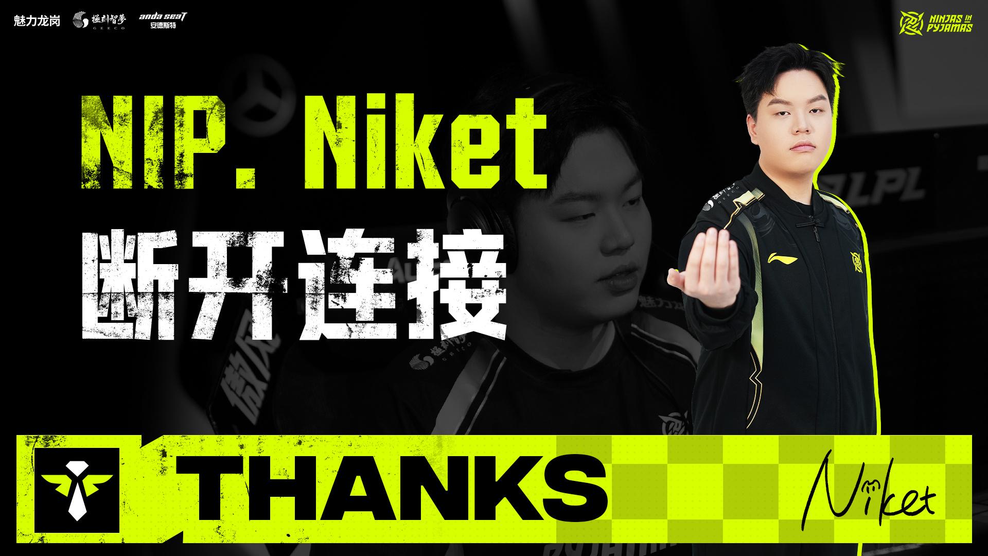NIP发布人员变动公告:辅助选手Niket正式离队